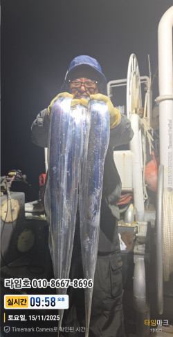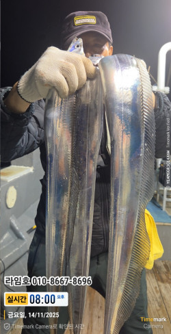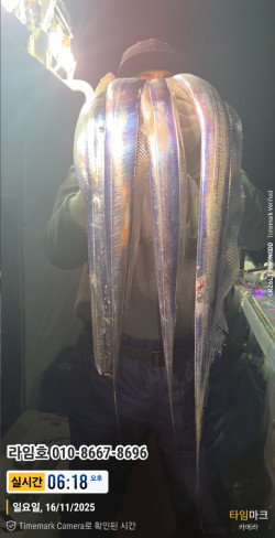 라임호 11/22 갈치출조오늘은 모험하러 서쪽으로 멀리 나왔네요.4시간이나 왔네요. 첫 시울에 갈치 생사 확인.장시간 풀치속 이삭줍기.새벽 4시경 쓸만거 달리긴하나, 돌아갈길이 멀고제로쿨 손님이 있어. 아쉬움을 뒤로 하고 철수 하네요.바다 상황은 아무도 알수 없네요.날씨도 좋은데, 용왕님이 김치 담궈 먹으라고. 풀치를그냥 막 주셨네요. 보양도 하라고 거의 조사님 한분마다하모 한마리씩도 주시네요. ~!????울조사님들 하루종일 낚시 하느라 고생하셨고 고맙습니다.언제나 라임은 '어제보다 더나은 조과를 위해 노력하는 선사' 가 되도록 하겠습니다.다음 출조때 뵙겠습니다.감사합니다. -라임올림-*** 통영 라임호 예약 안내 **