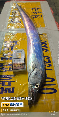 대마골로 직행.~! 나가는길에 순탄하지가 않음. 너울도 텅텅.~!포인트 도착하여, 낮 갈치 구경 시작~!고기는 오지 않고~!, 비는 오고~!(시원하게 오네~!) 한시간 흘러 ~! 풀치로 시작을 알림 갈치구나 하는 사이즈가 1시울에 1마리씩 나오기 시작~!(캬. 사이즈 준수~!) 수온이 20도~! 겨울인데 손시림 없고, 옷은 덥고 날씨가 희한하네요.~!오랜만에 싸이즈 괜찮은 녀석들을 쉽게 본거 같네요..아쉬움이 남네요.~! (조사님들도 다음주 날 괜찮은날 알려 달라 하시네요.~!)항상 ' 어제보다 더나은 조과를 위해 노력을 하는 선사'가 되도록 하겠습니다.오늘 하루 낚시 하시느라 고생 많으셨습니다. 다음 출조때 뵙도
